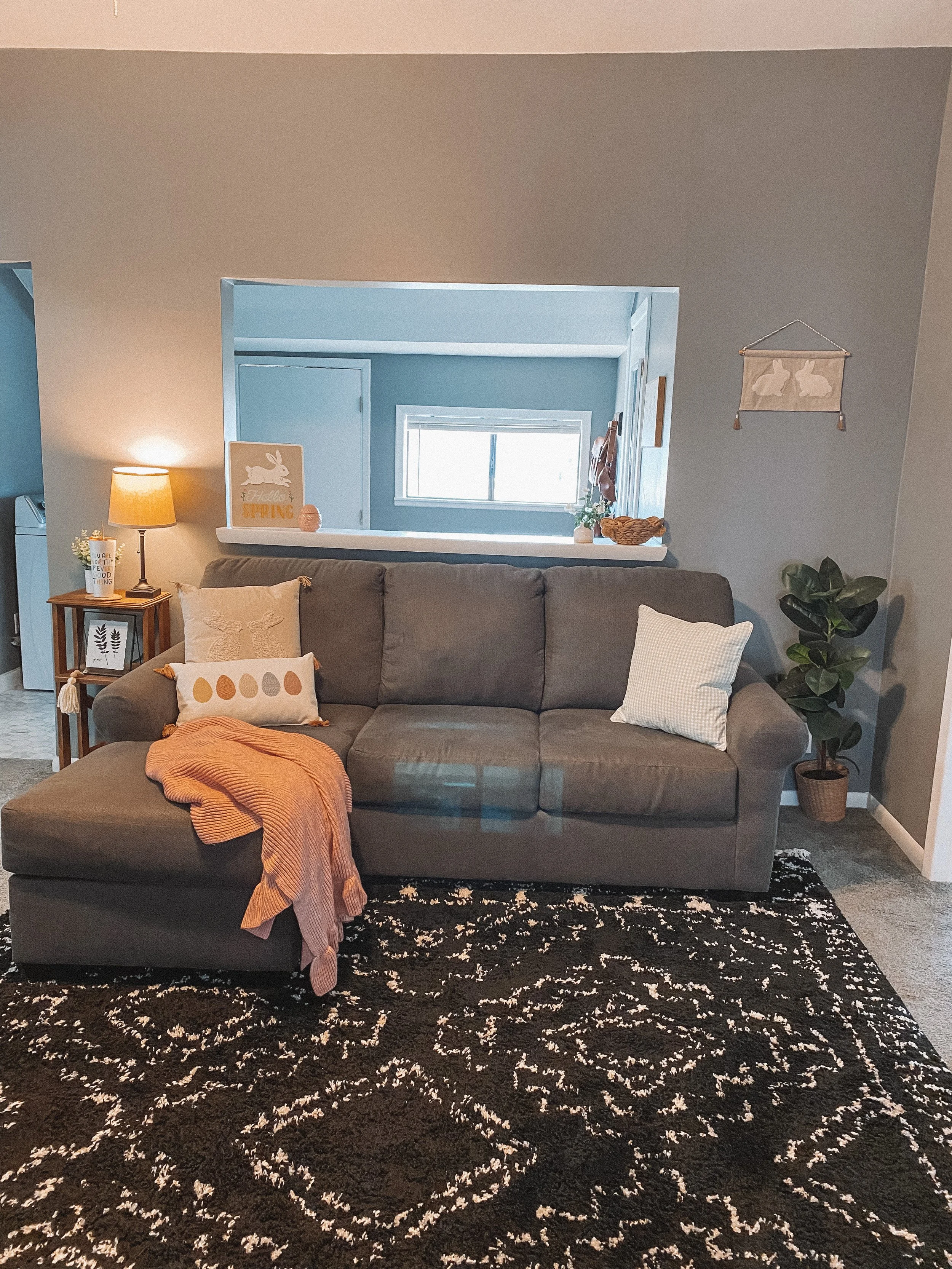 First up is my little corner sitting area at the front of my house. I love this little space & how changing up some of the decor makes it so perfect for spring, especially with the blinds open.