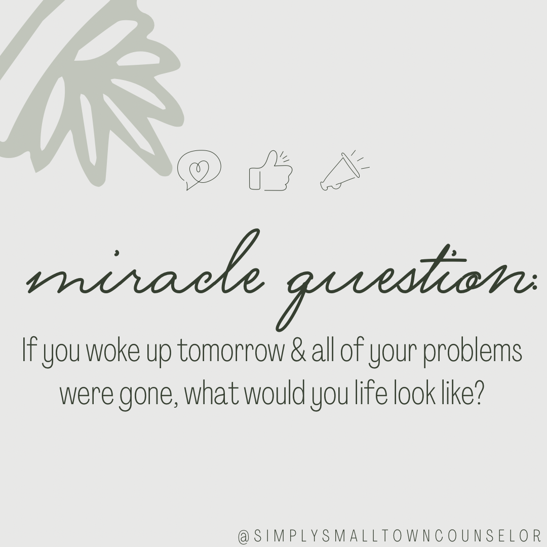 Recently I was giving my youngest sister free therapy ;) & talking through options with her for switching her major. During our conversation, I asked her the miracle question (one of my favorite things to ask students who are conflicted about something & are having a hard time “finding the answer”).