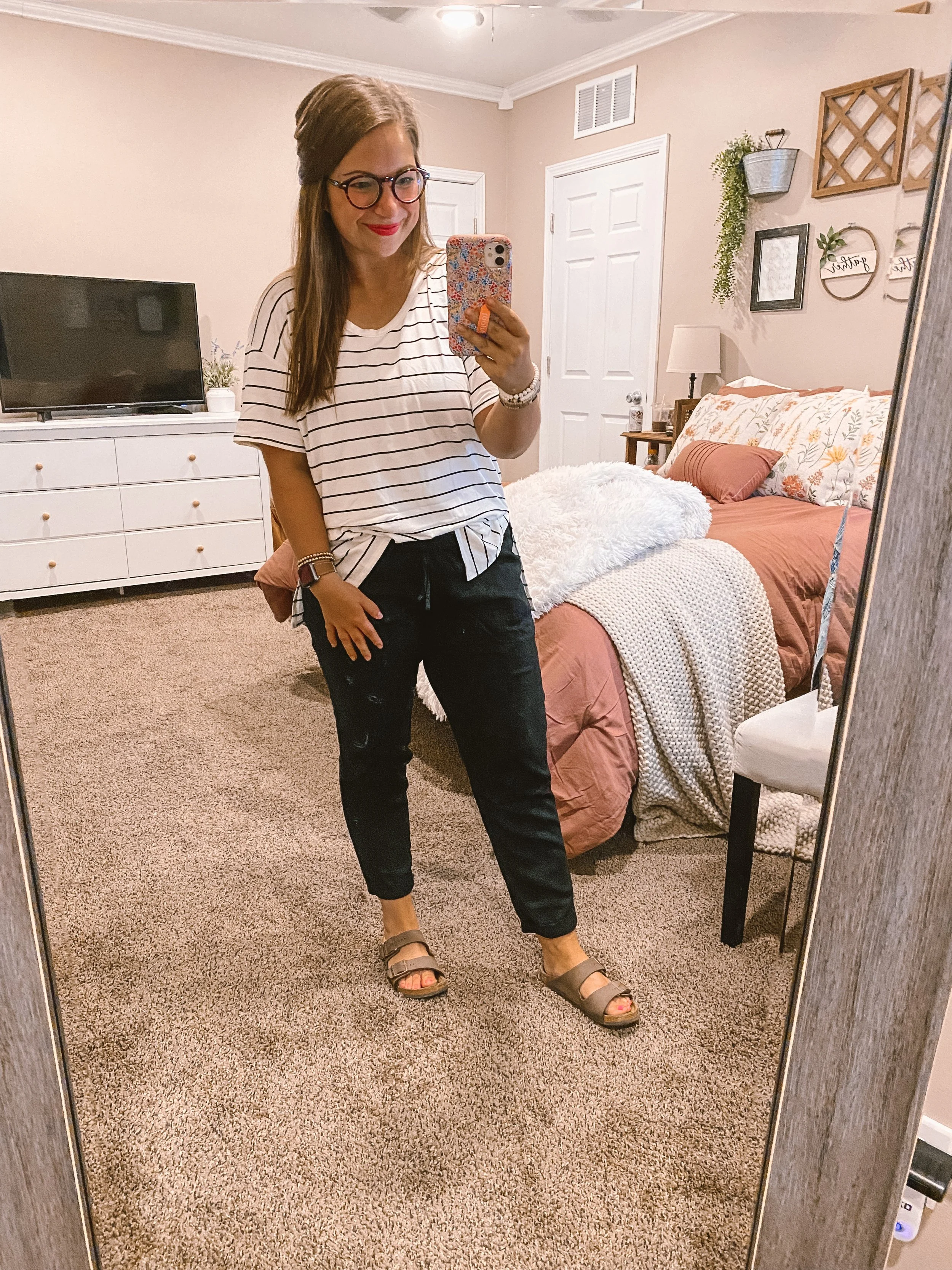 Spent the night at my parent’s house so my OOTD background is a little bit different than usual! Loving this trendy Amazon tee.