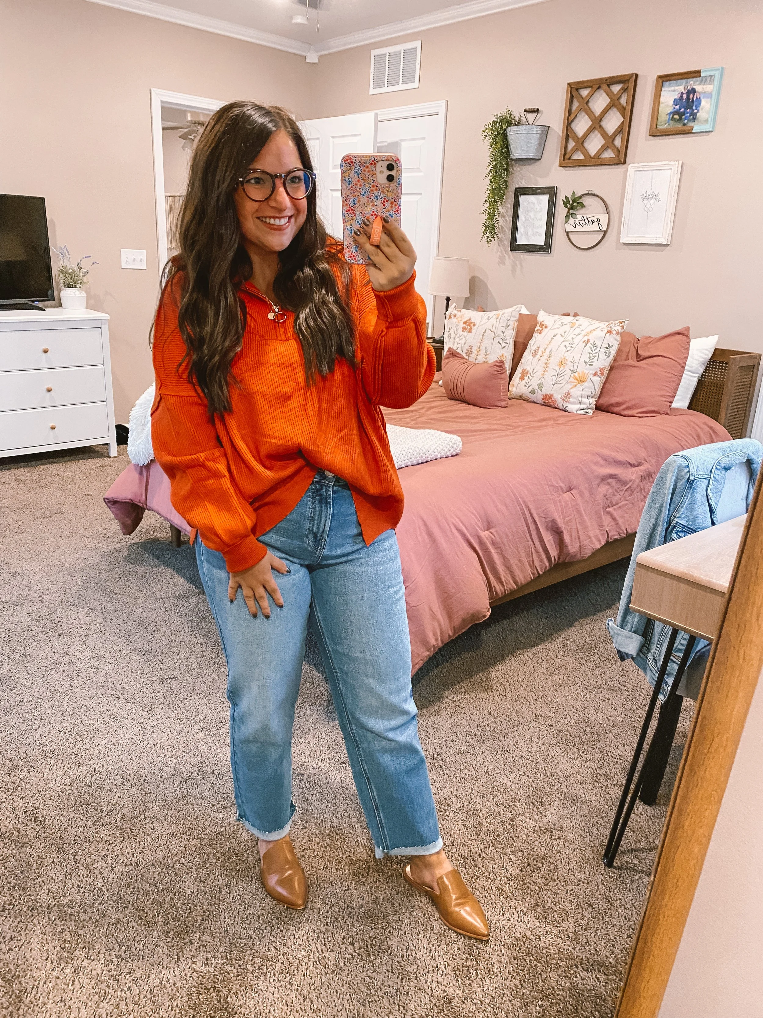 Neutral sweaters are my JAM! I absolutely love the unique stitching, collar, cuffs & hemlines of this one!! How cute! I love this one with comfy mom jeans, but it will be darling with colored pixie pants as well! I’m wearing a medium & would say it fits true to size.