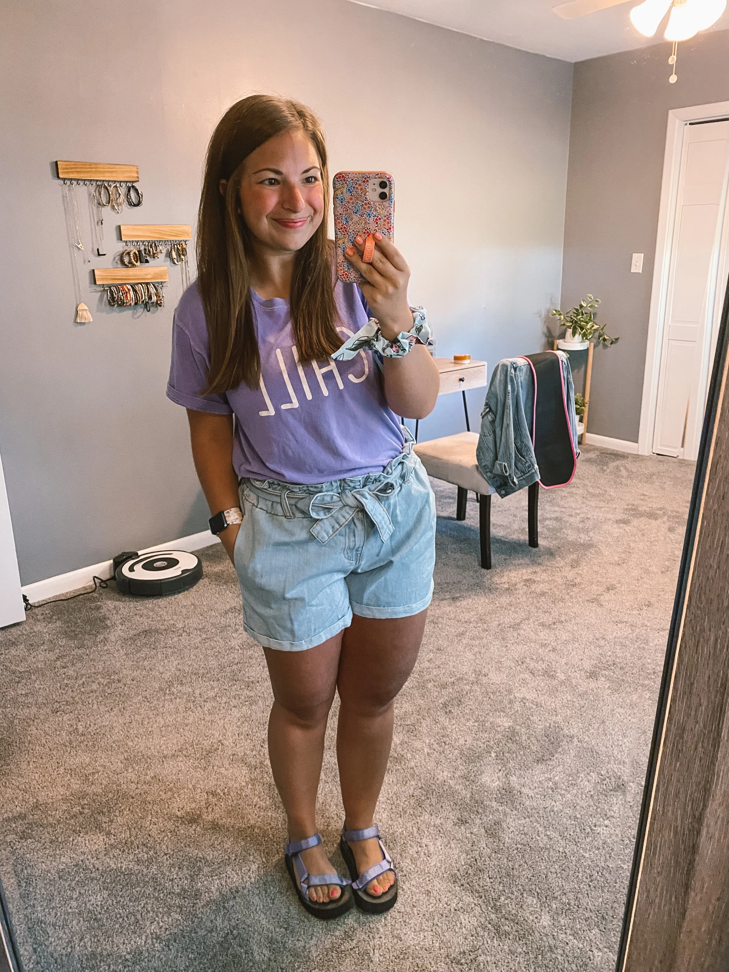 When I was in high school, I was really big into kimonos. This kind of reminds me of that but it’s called a duster cardigan. The colors & pattern make it so easy to be paired with tons of different things! I went for a casual summer day with this outfit. These denim shorts are also target & of course, I had to pair it all with my fav tank bodysuit!