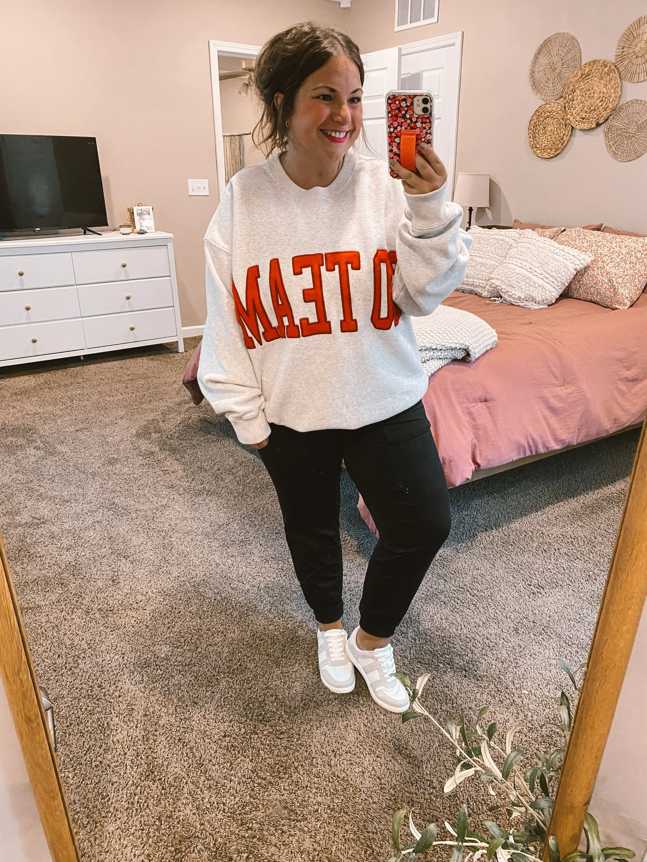 I am all about showing school spirit on game days! Most of the time, I lean heavily on the comfortable side. But still want to look stylish while showing my school pride! Game days can be LONG, since I often work the games & don’t have time to run home first + I have Piper with me too! Game days are her fav!!