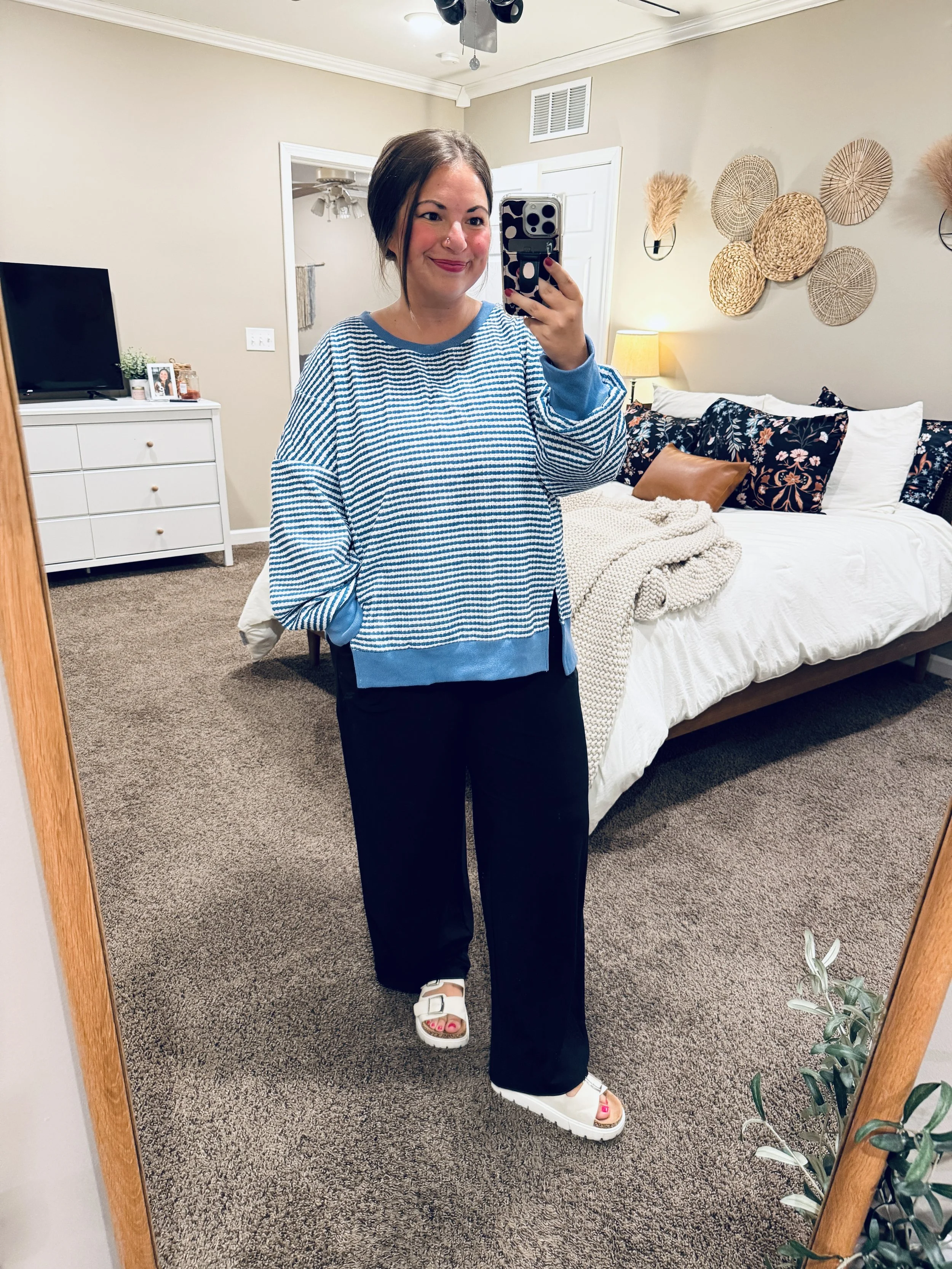 sweater tee: fits small // wearing an XL (fits like a large — I like a looser fit)